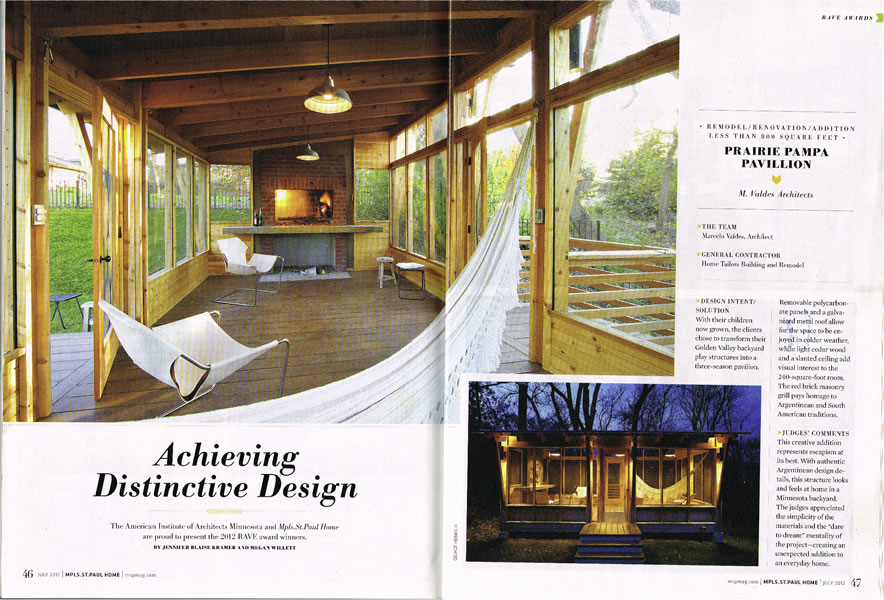 M. Valdes architects PLLC is a residential architecture firm based in the Twin Cities that specializes in home design. The motto More Home Less House defines our design philosophy: to make enjoyable, amazing homes while cutting back on unnecessary square footage and cost. Based on prioritizing quality over quantity, the homes we design not just look good and work well for our clients, but they help lessen the environmental impact that the residential building market has today.